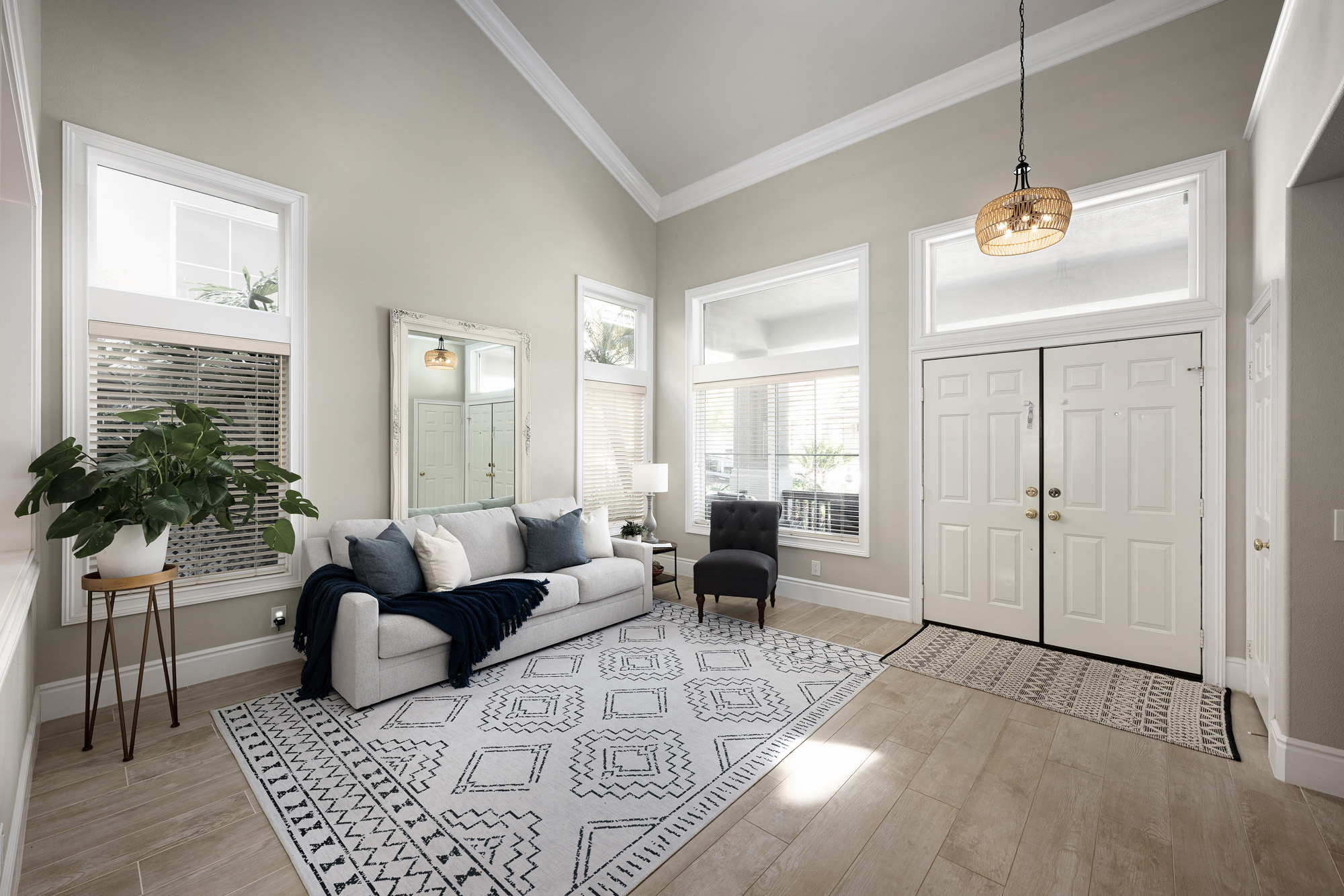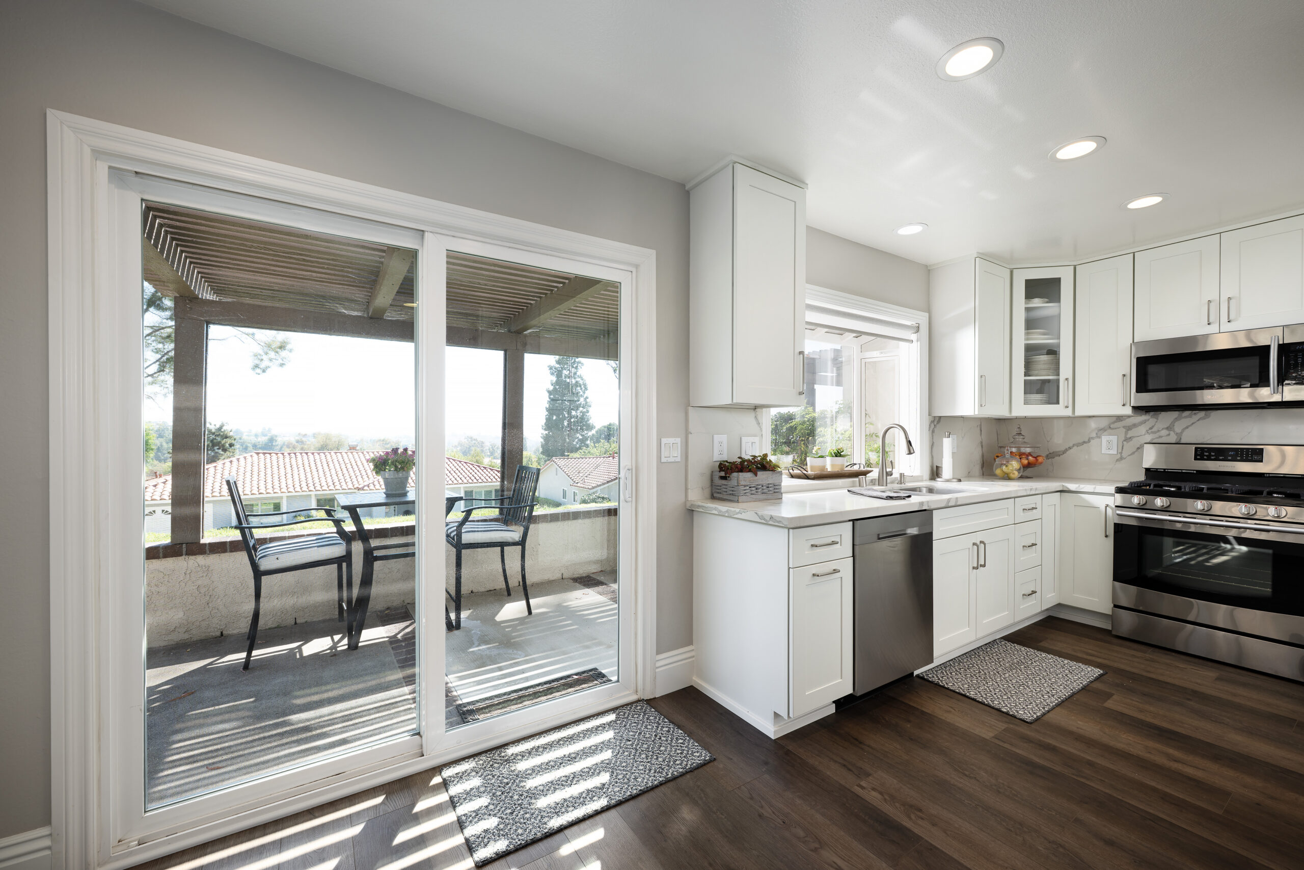 Welcome to this beautifully upgraded 4-bedroom, 3-bath home in the heart of Rancho Santa Margarita. The living room and dining room feature a vaulted ceiling, recessed lighting, plantation shutters, and a stunning chandelier, creating an inviting space for both everyday living and entertaining. Wood-look tile flooring flows throughout the main level. The updated kitchen offers white mission-style cabinetry, beautiful countertops, a farmhouse sink, and stainless steel appliances including a 5-burner KitchenAid range and Bosch dishwasher. It opens to the inviting family room with a fireplace, ceiling fan, and recessed lighting. The downstairs bath has been tastefully upgraded with matching mission-style cabinetry and finishes. Upstairs, the spacious primary suite features a vaulted ceiling, ceiling fan, and a bright, open feel, along with a beautifully upgraded primary bath showcasing a dual vanity, glass-enclosed shower, and a walk-in closet. The upper level also includes three additional bedrooms and an upgraded guest bath, offering comfortable space and flexibility for family, guests, or a home office. Enjoy the private backyard and side yard featuring an Alumawood patio cover with a ceiling fan and lighting, a storage shed, and beautifully landscaped grounds with vibrant color. Additional highlights include dual-pane vinyl windows and sliding doors, a newer water heater and FAU/AC system, PEX repiping, an alarm system, synthetic turf in the front yard for easy maintenance, and a 2-car attached garage with built-in cabinets and a dedicated laundry area. Residents enjoy Rancho Santa Margarita’s exceptional amenities, including pools, tennis courts, the Beach Club lagoon, scenic lake, parks, and year-round community events.