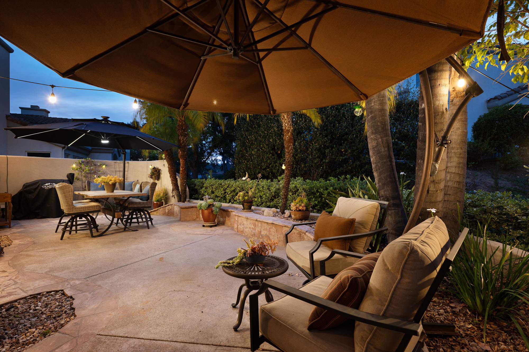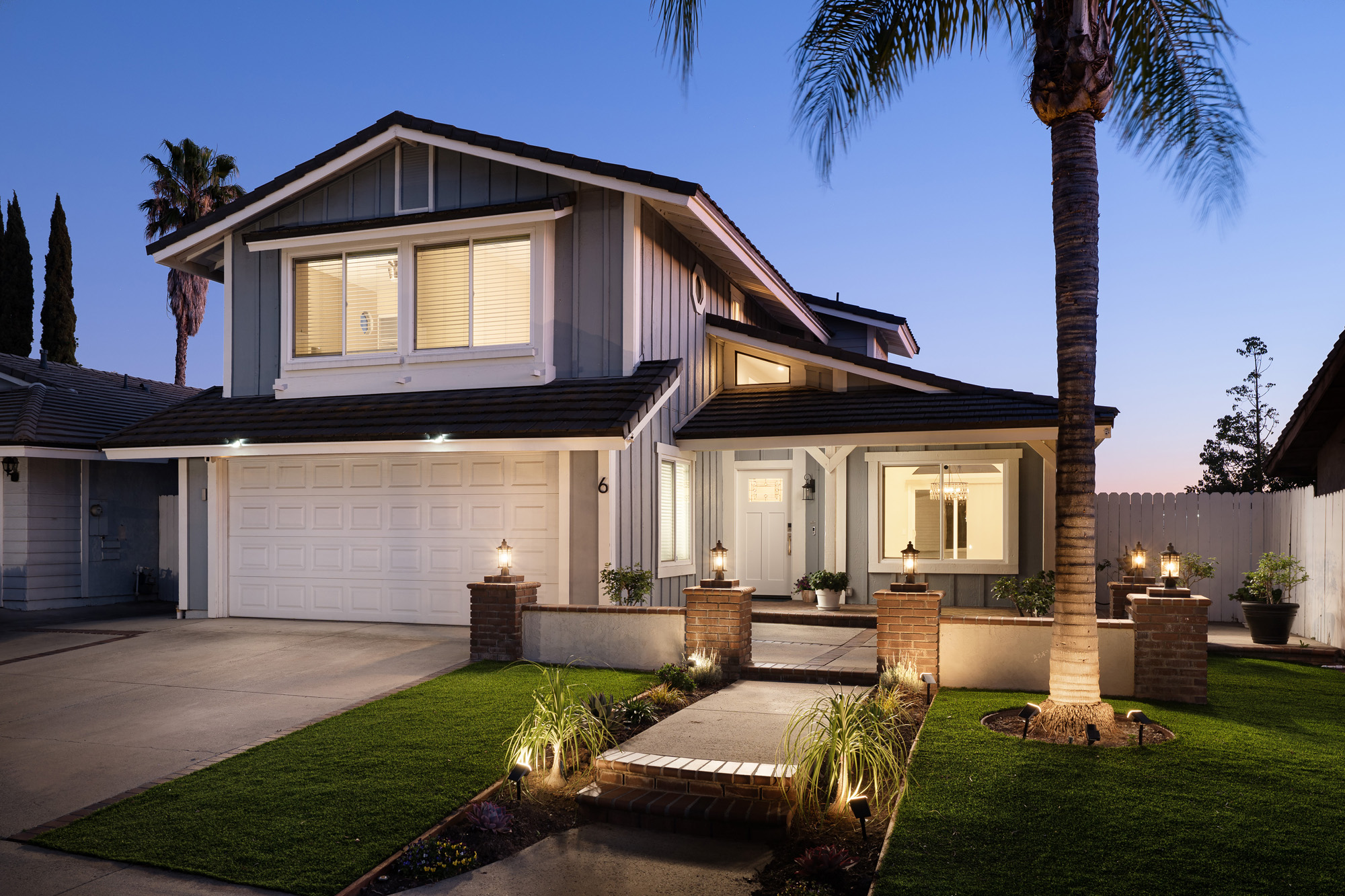 Located in the desirable Alicante Tract! A Tijeras Creek Golf Course neighborhood! This stunning, beautifully upgraded home offers a warm and inviting layout with a dramatic front entry and open living spaces enhanced by vaulted ceilings and beautiful vinyl flooring. The kitchen, truly the heart of the home, features granite countertops, custom-painted cabinetry, stainless steel appliances, under-cabinet lighting, a stovetop, and solarium windows, and flows seamlessly into the light-filled family room with abundant natural light. The living and dining room showcase a vaulted ceiling, plantation shutters, a skylight, and a striking fireplace with custom tile and mantle. The spacious primary bedroom includes custom paint, a vaulted ceiling, and a large walk-in closet. The primary bathroom is elegantly upgraded with a Restoration Hardware vanity, Crema Marfil marble, custom tile, and a shower with a tumbled marble enclosure, tile inlay, and seamless glass door. Upstairs also features two additional bedrooms and an upgraded guest bathroom. The main level offers a beautifully upgraded guest bathroom along with a dedicated laundry room. Step outside to a private backyard retreat with hardscape and lush tropical landscaping, perfect for relaxing or entertaining. Additional features include a two car attached garage with a driveway. Residents enjoy the Alicante Association pool and spa along with Rancho Santa Margarita’s amenities, including parks, pools, the lake, tennis courts, community events and more!